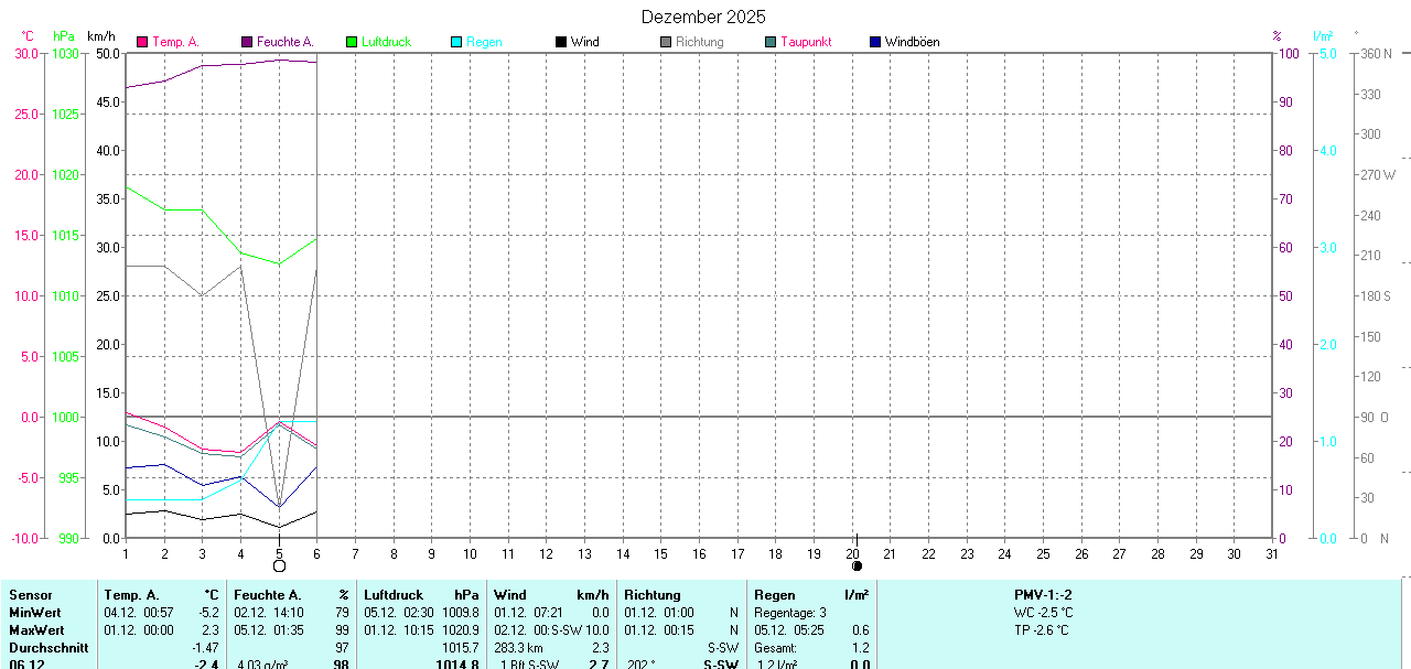 Max.(06:15) S-SW 19,3 km/h (3 Bft) |